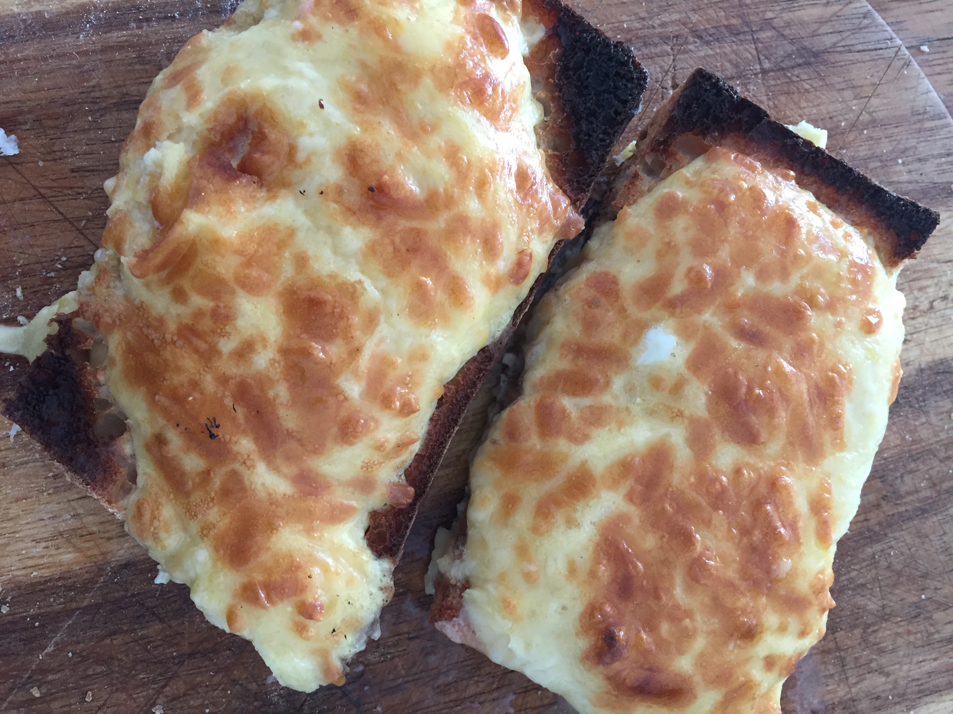 - Toast the bread on both sides and place on a baking tray. Cover one side of each slice of toast with the rarebit mixture.