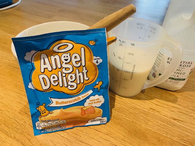 My brain cells scream with the nonsense coming out of my mouth. There is no food yet invented that looks remotely like the creamy, soft foam of butterscotch Angel Delight. It is not a convenient way of inventing anything, just a spectacular triumph on its own.