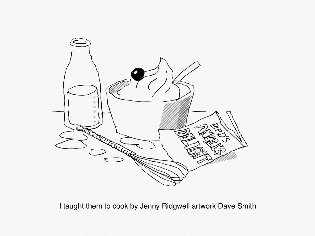 They file past with tarts piled with pastel coloured foam. A mark is a joke for following instructions from a packet of chemistry.