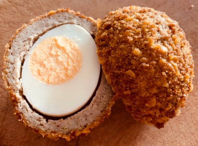 We roast the Scotch eggs – no deep fat fryer in my room – it’s much too dangerous. Then bake the rock cakes, shred the cabbage and grate carrots for the coleslaw and finally squeeze the oranges. Then pack complete with salt and pepper cruets just as the book says. The boys take the tablecloths and the girls carry picnic baskets. Boys don’t carry baskets, so there is no point asking. While the girls sit quietly tucking into warm Scotch eggs, even the hungriest boy is missing.