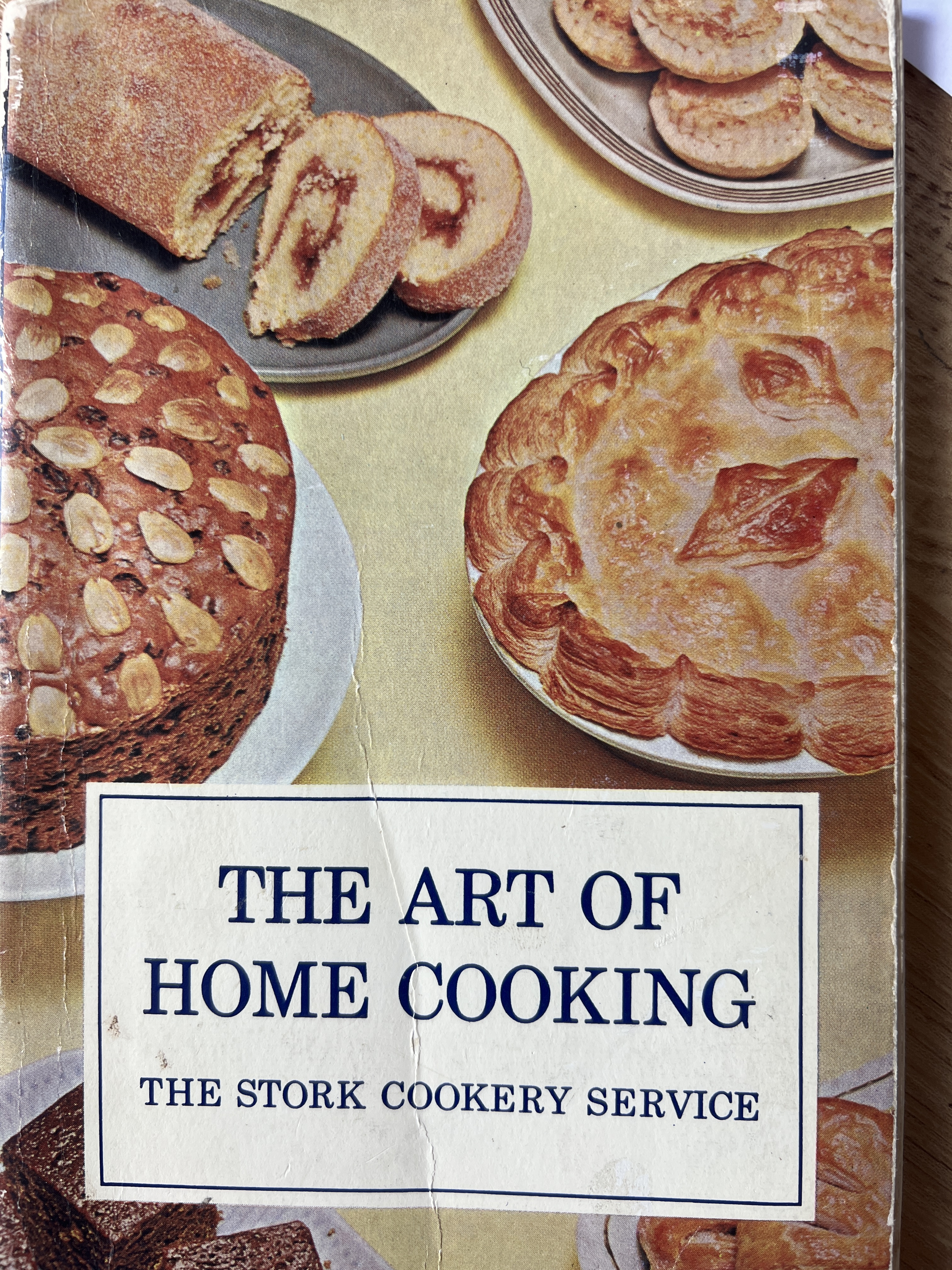 Today’s lesson is the All in One Method for cake making, promoted by Marguerite Patten and other famous cooks at those demonstration kitchens at the food shows in Olympia and Earls Court. Some newly arrived Stork leaflets called The Art of Home Cooking are piled on my desk to hand out for them to take home.
