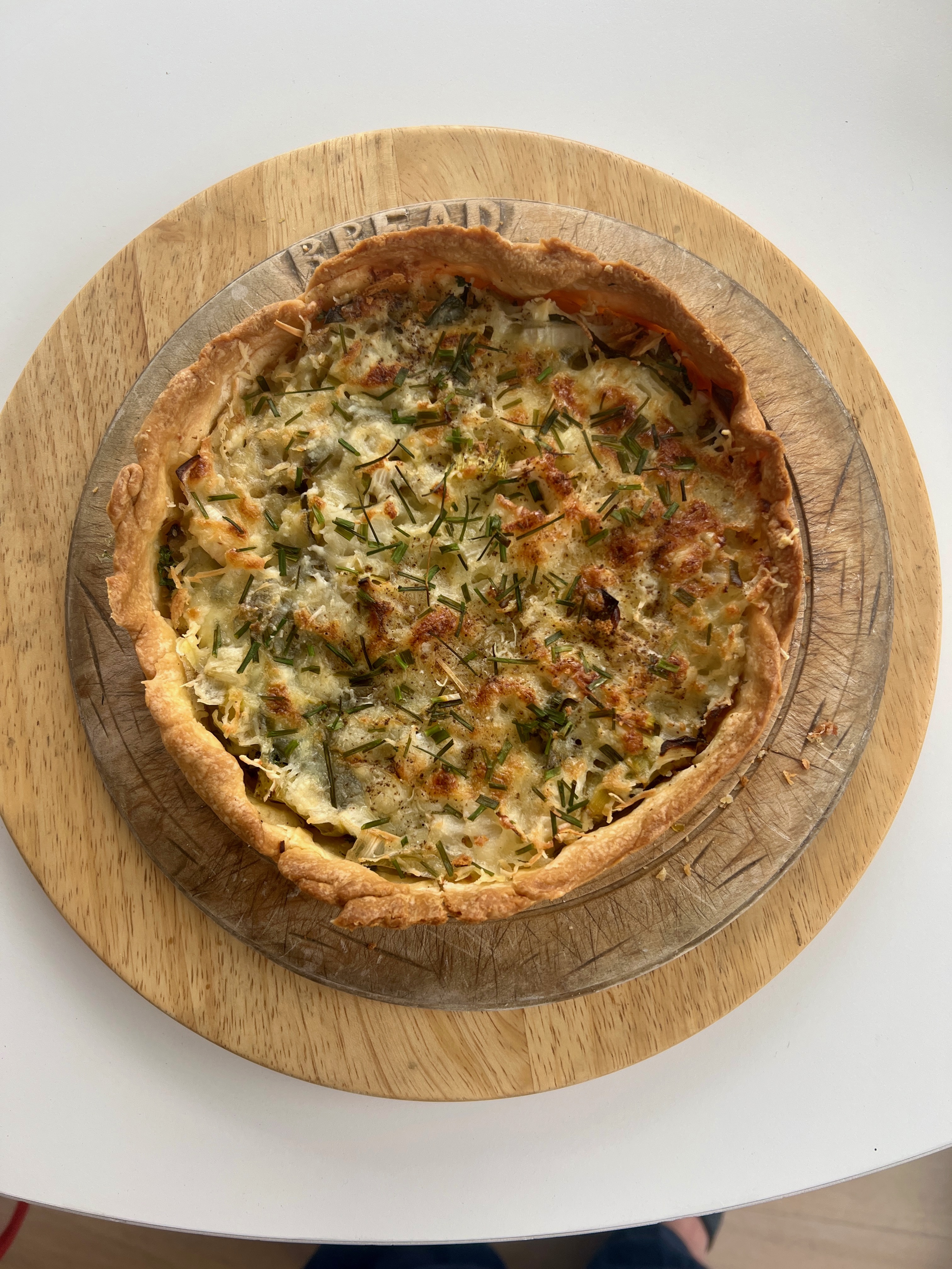 - Bake the flan blind for 15 mins, sprinkle a little cheese and bake a further 5 mins.