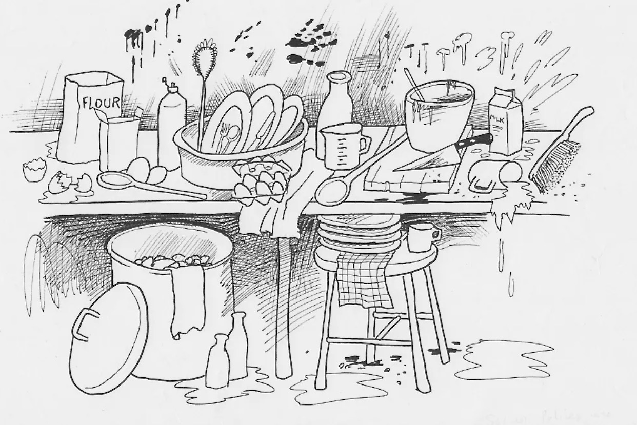 ‘See? Wash things up straight away. It’s easier.’
